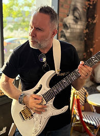 JiB AKA "JiB" à guitare lead. et au chant. Virtuose de son instrument (enfin... de ses instruments car il n'a pas qu'une seule guitare) et adepte d'achats compulsifs de pédales d'effets. Il joue également de la batterie et de la basse quand la place est libre.