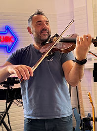 Alex au violon ou à la seconde guitare. De formation classique il est passé maître certifié niveau 3+ en blagues complexes cette année. Il ne chantera jamais plus qu'une chanson.